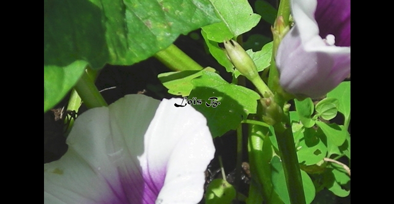 Fleurs et fruits de Patate douce. La fleur donne rarement des fruits non utilisés par l'Homme.