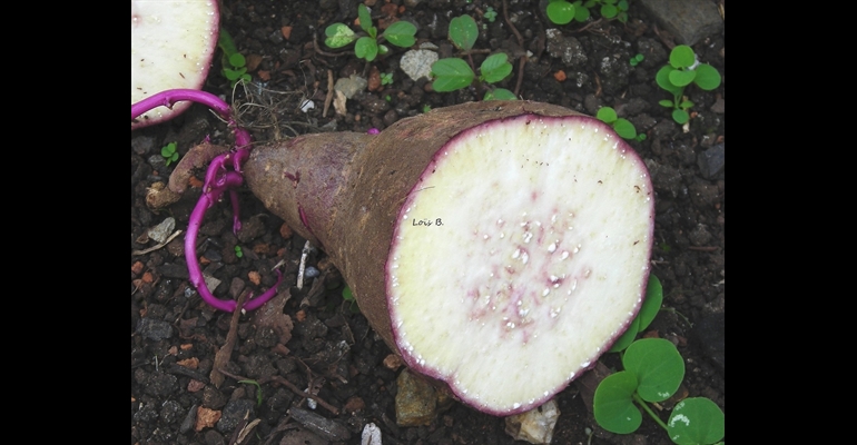 Une variete de Patate douce_New1. Il existe plusieurs variétés : tubercules ronds ou allongés, couleur de la peau.