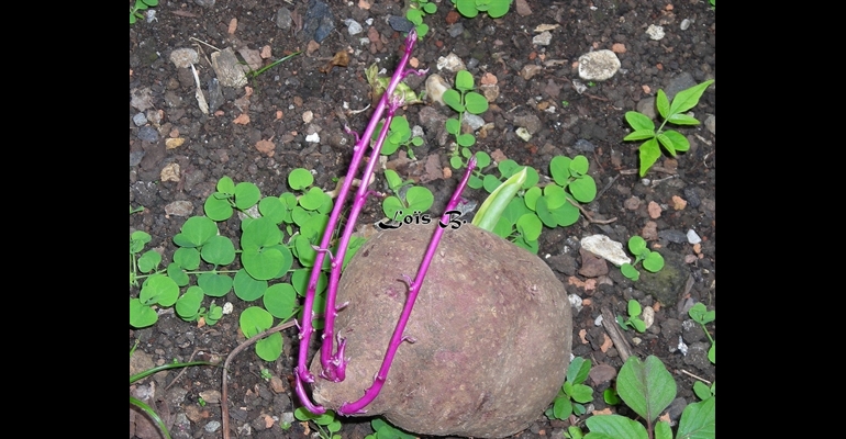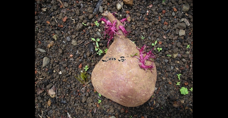 Patate douce. La Germination d'un tubercule..