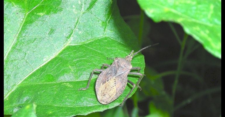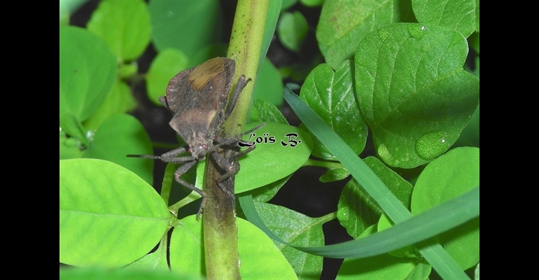 La Punaise Patate. Spartocera batatas L. Cet insecte vit en parasite sur la Patate douce et la Tomate.